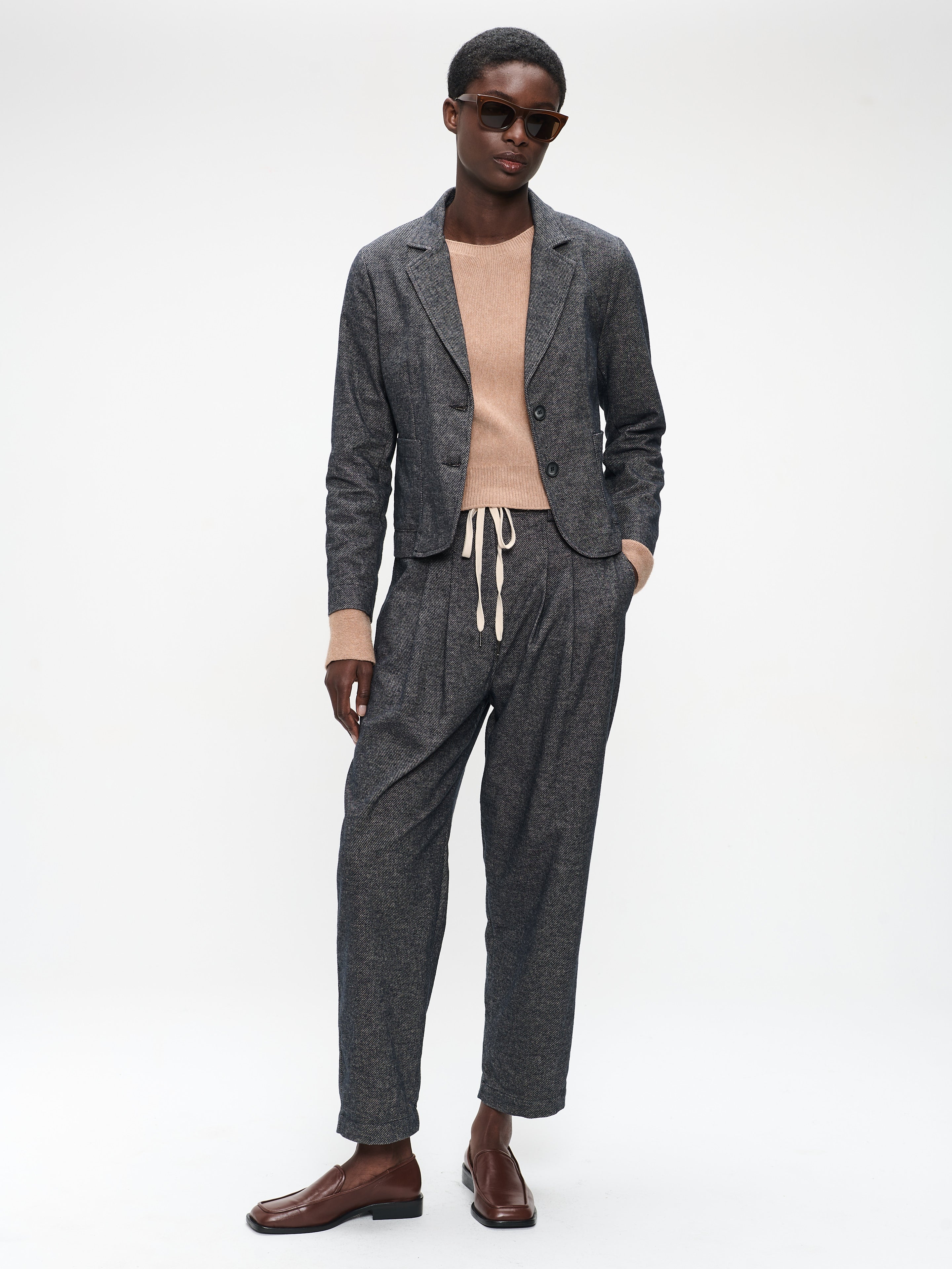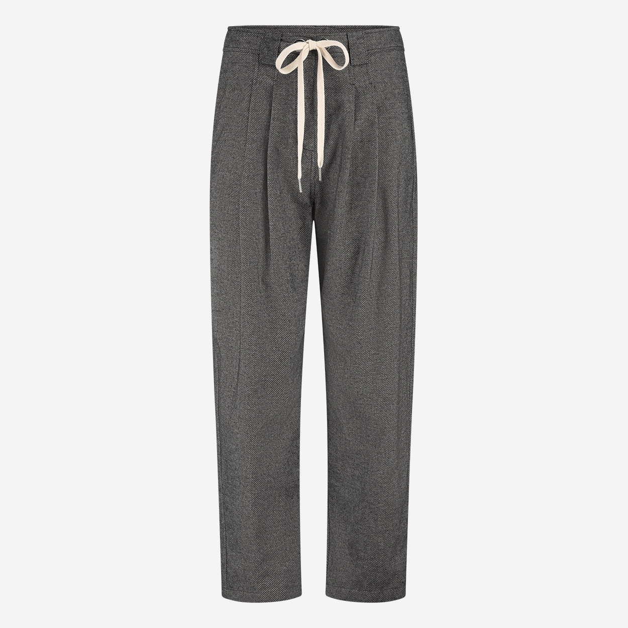 De Cotton Mix broek combineert tijdloos kleermakerswerk met een eigentijdse touch, gemaakt van een eersteklas katoenmix voor uitzonderlijk comfort en stijl. Deze broek heeft een ontspannen pasvorm met een verstelbaar trekkoord in de taille en is ideaal voor het creëren van moeiteloos chique looks. Perfect voor elke gelegenheid, naadloos te combineren met casual uitjes. Deze broek is een veelzijdige aanvulling op je garderobe en biedt een perfecte balans tussen comfort en elegantie, waardoor het een goede keuze is voor het herfst-/winterseizoen.