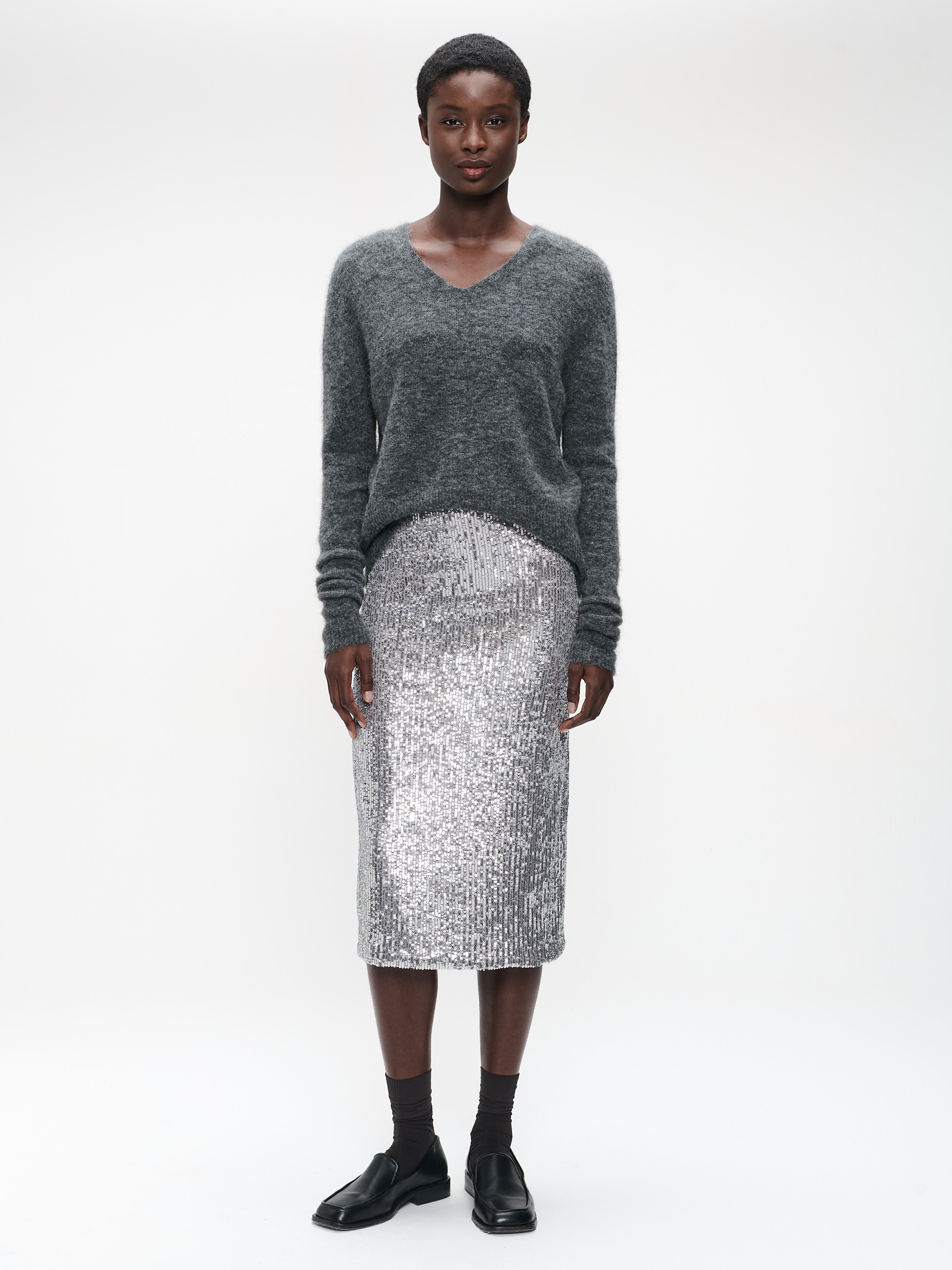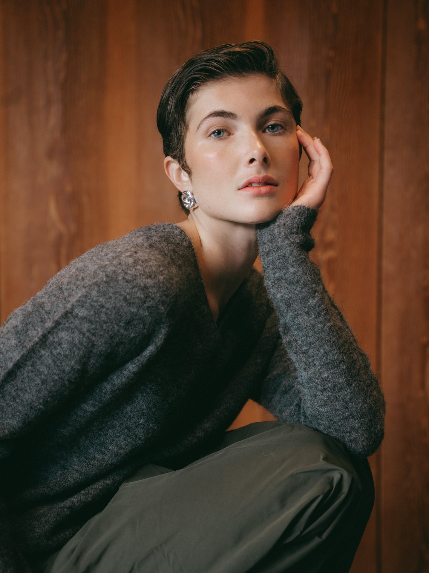 • Uitgevoerd in een verfijnde grijs gemêleerde tint