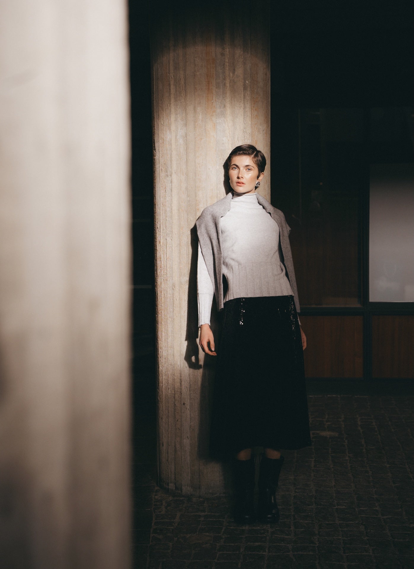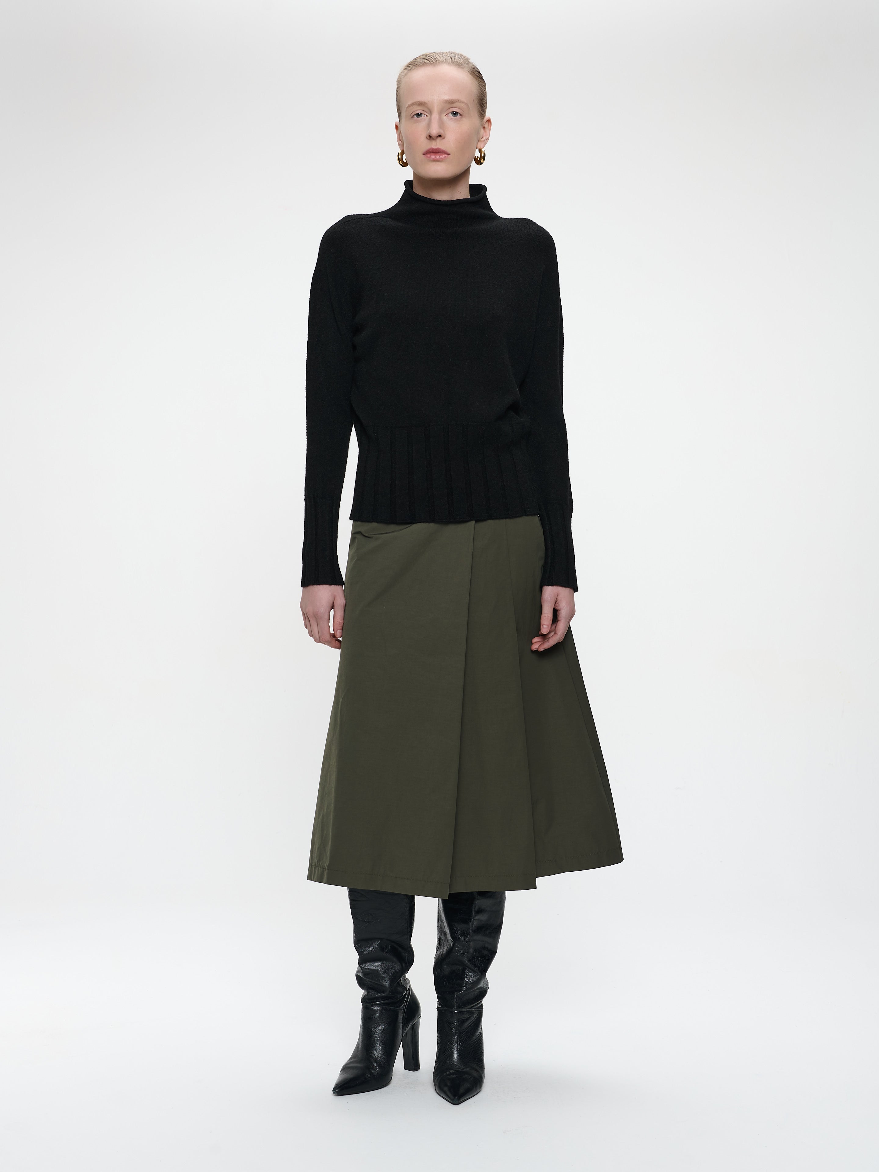 De Raffaele poplin rok is een verfijnde A-lijn rok, vervaardigd uit stevig katoenpoplin met een gestructureerd silhouet. De hoge taille, verstelbare trekkoordriem en elegante plooien zorgen voor een flatterende en vrouwelijke vorm, terwijl de camel kleur een warme, seizoenstint geeft. Perfect te combineren met gebreide kleding of gestructureerde tops voor een tijdloze en comfortabele look.