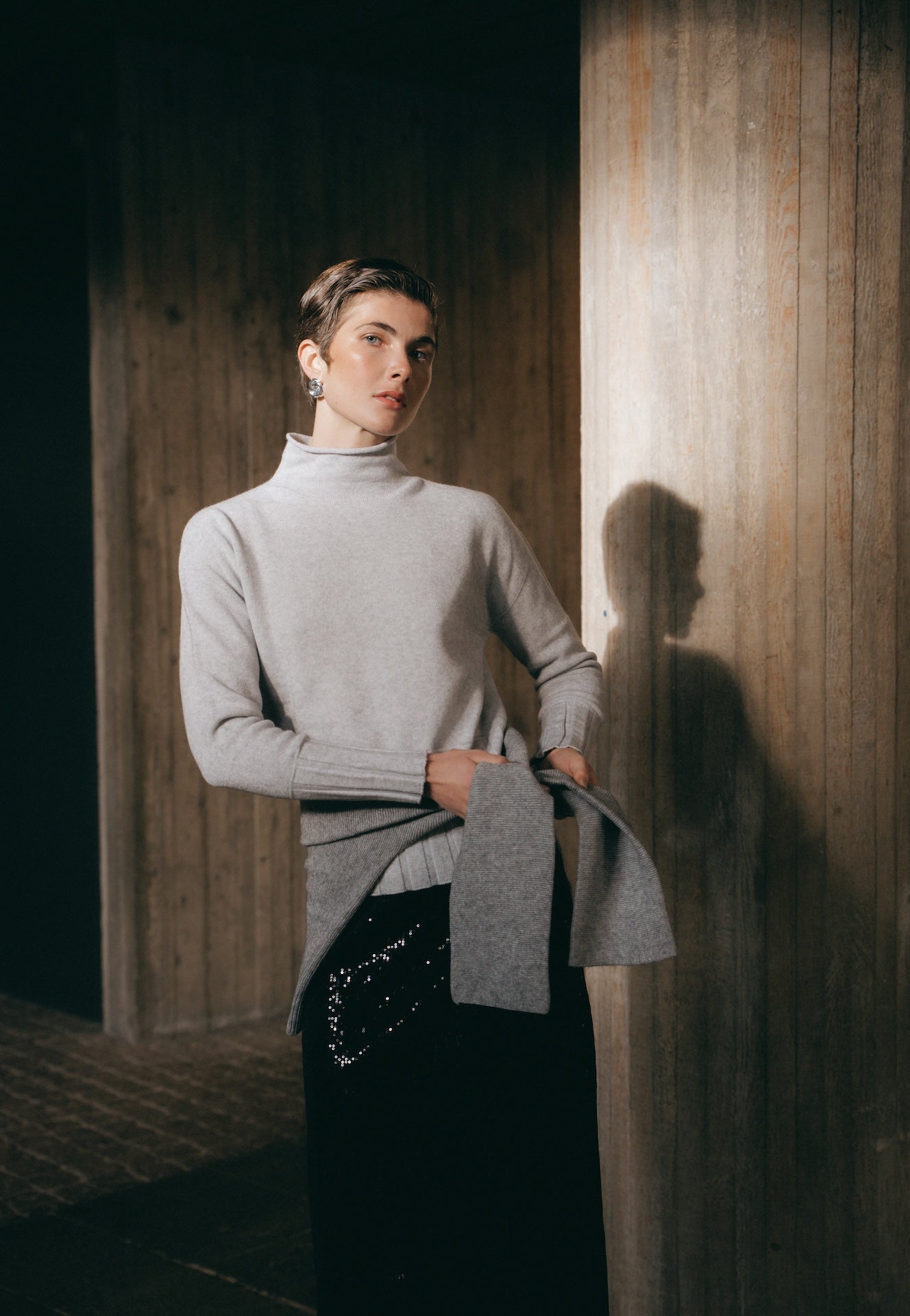 Deze tijdloze viscose trui is een veelzijdig item, ontworpen voor comfort en moeiteloze gelaagdheid. Met een zachte textuur en een ontspannen silhouet is het ideaal voor zowel nette als casual looks in elk seizoen. De hoge hals en lange mouwen zorgen voor warmte en elegantie.