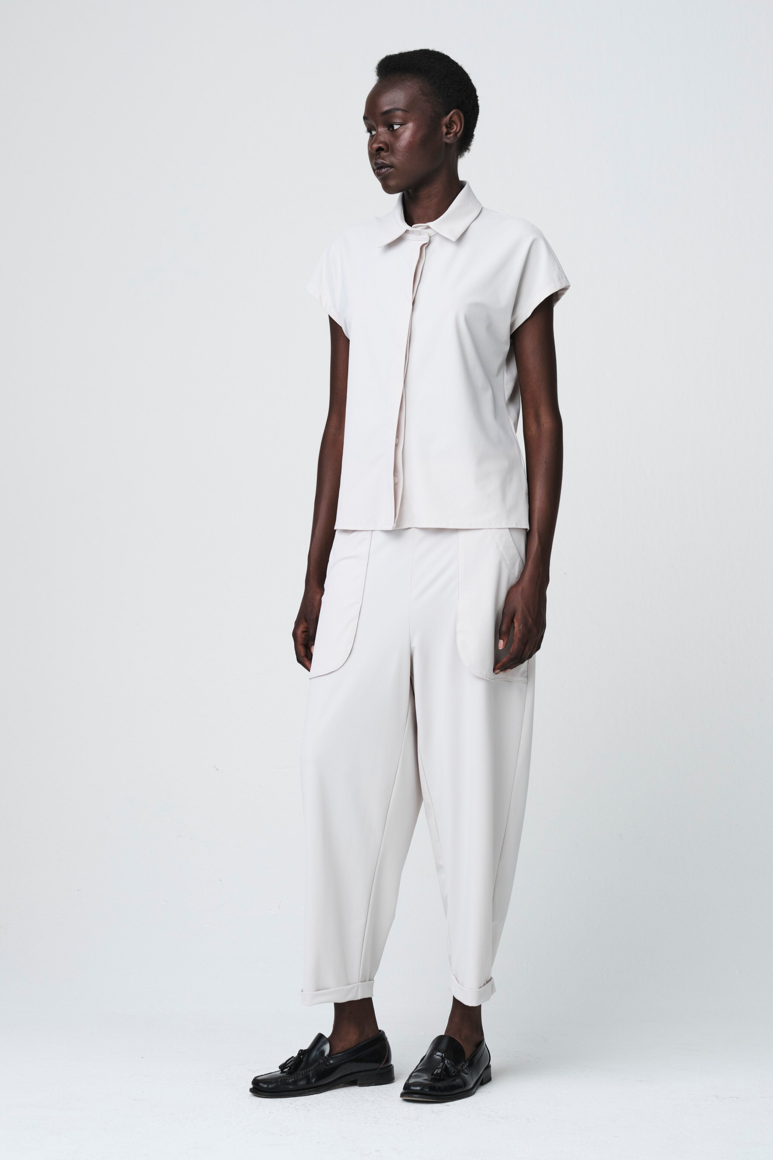 De Rosemarie Pants van Jane Lushka zijn het perfecte voorbeeld van modern minimalisme en comfort. Gemaakt van lichtgewicht technische jersey, met een relaxed fit en cropped pijpen voor een moderne, cleane look. De elastische tailleband en praktische zakken zorgen voor comfort en veelzijdigheid. Combineer met de bijpassende top voor een stijlvolle, gecoördineerde outfit.