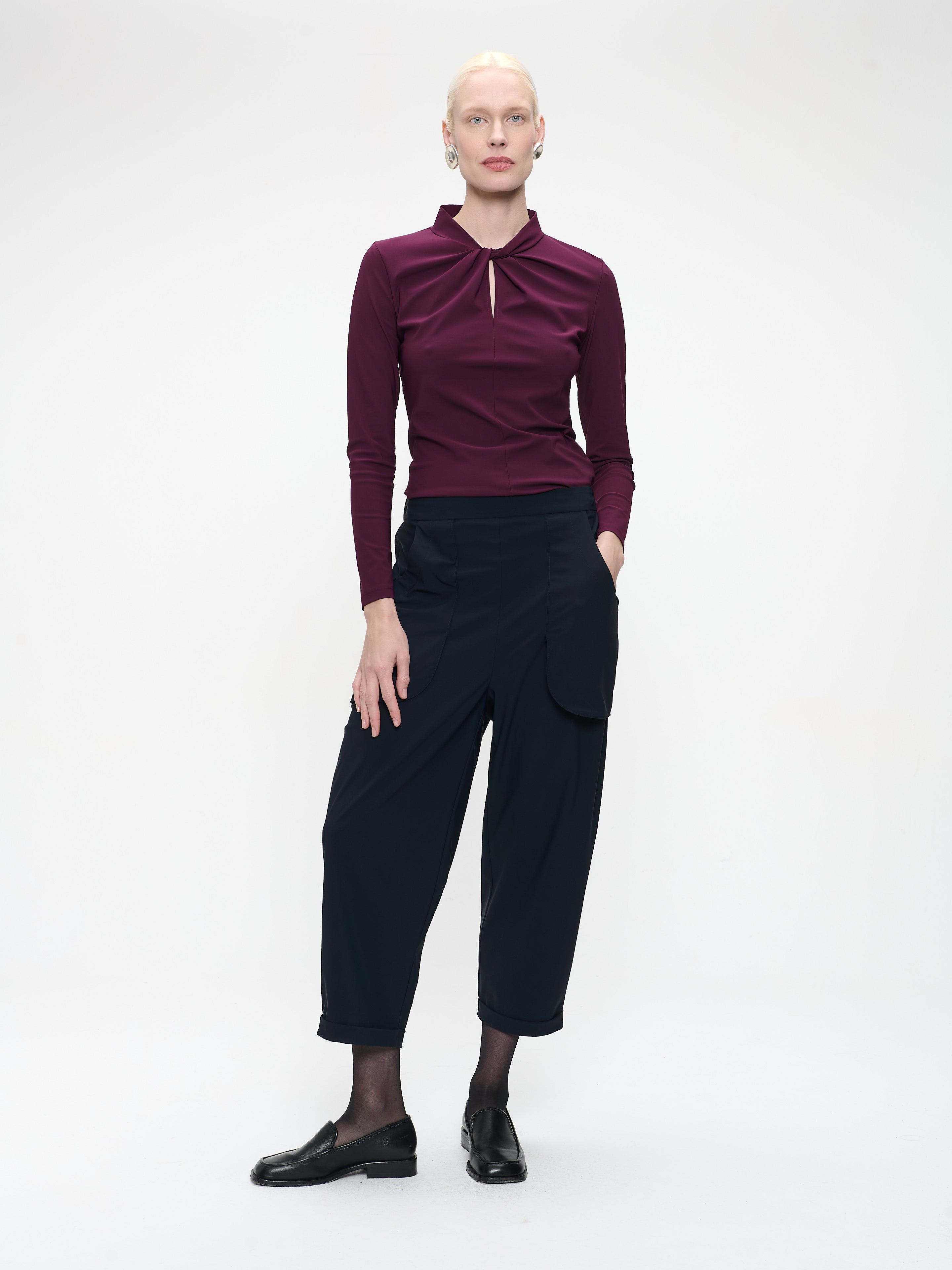 Met zijn scherpe snit en onverwachte voorste split, biedt de Ken top een moderne kijk op het klassieke overhemdsilhouet. Gemaakt van een glad technisch jersey, creëert het een strak maar comfortabel model, perfect voor zowel zakelijke als informele gelegenheden. Combineer met een getailleerde broek of een opvallende rok voor een eigentijdse, zelfverzekerde look.
