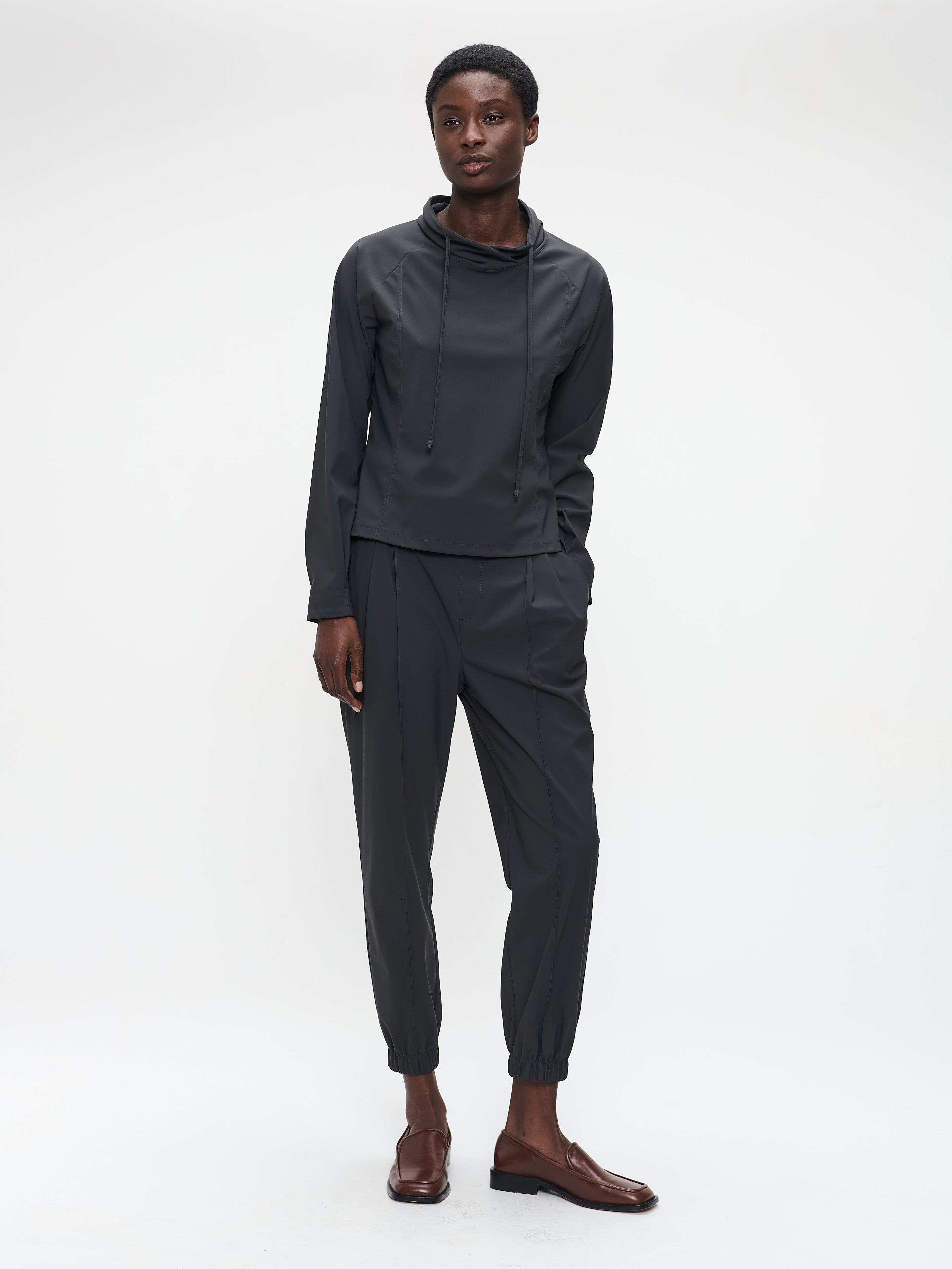 Minimalistisch en veelzijdig, de Hilary top is een essentiële garderobestuk die comfort en moderne elegantie brengt. Gemaakt van zacht geborsteld technisch jersey, biedt het een strak silhouet met een vleugje verfijning. De hoge kraag en aansluitende pasvorm maken het ideaal om te combineren of solo te dragen op koelere dagen.