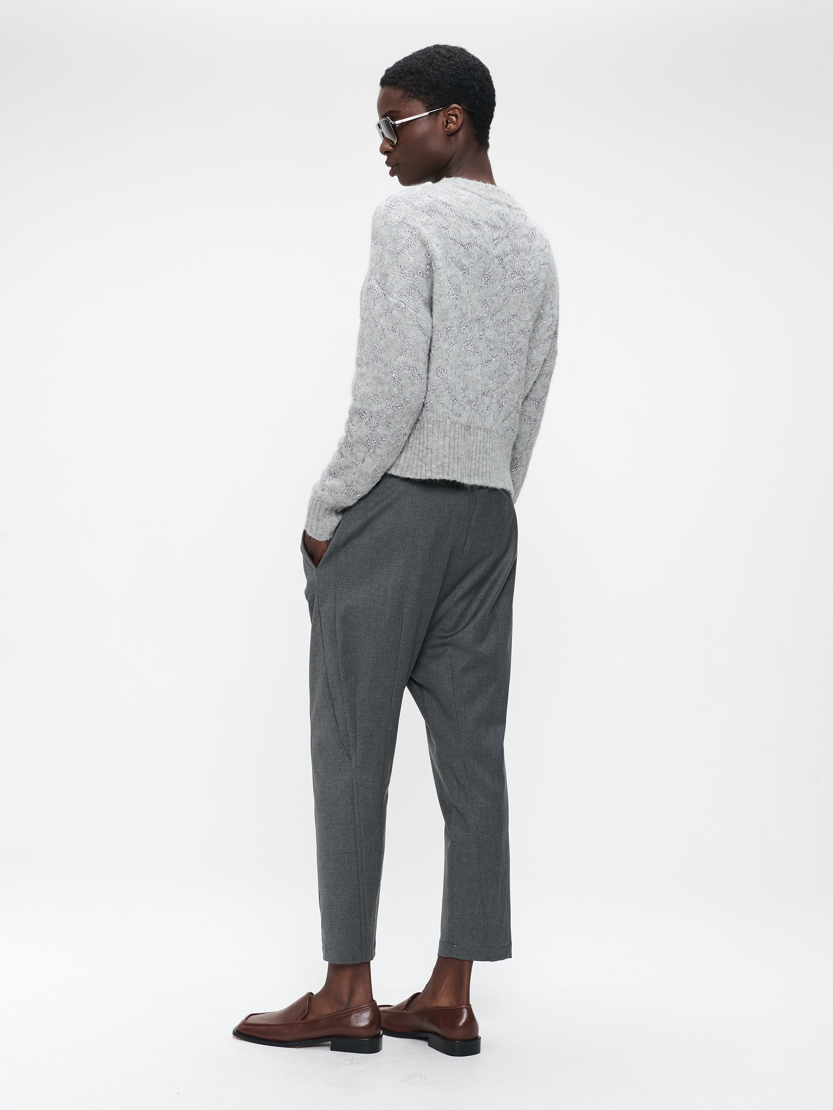• Uitgevoerd in een verfijnde grijs gemêleerde tint
