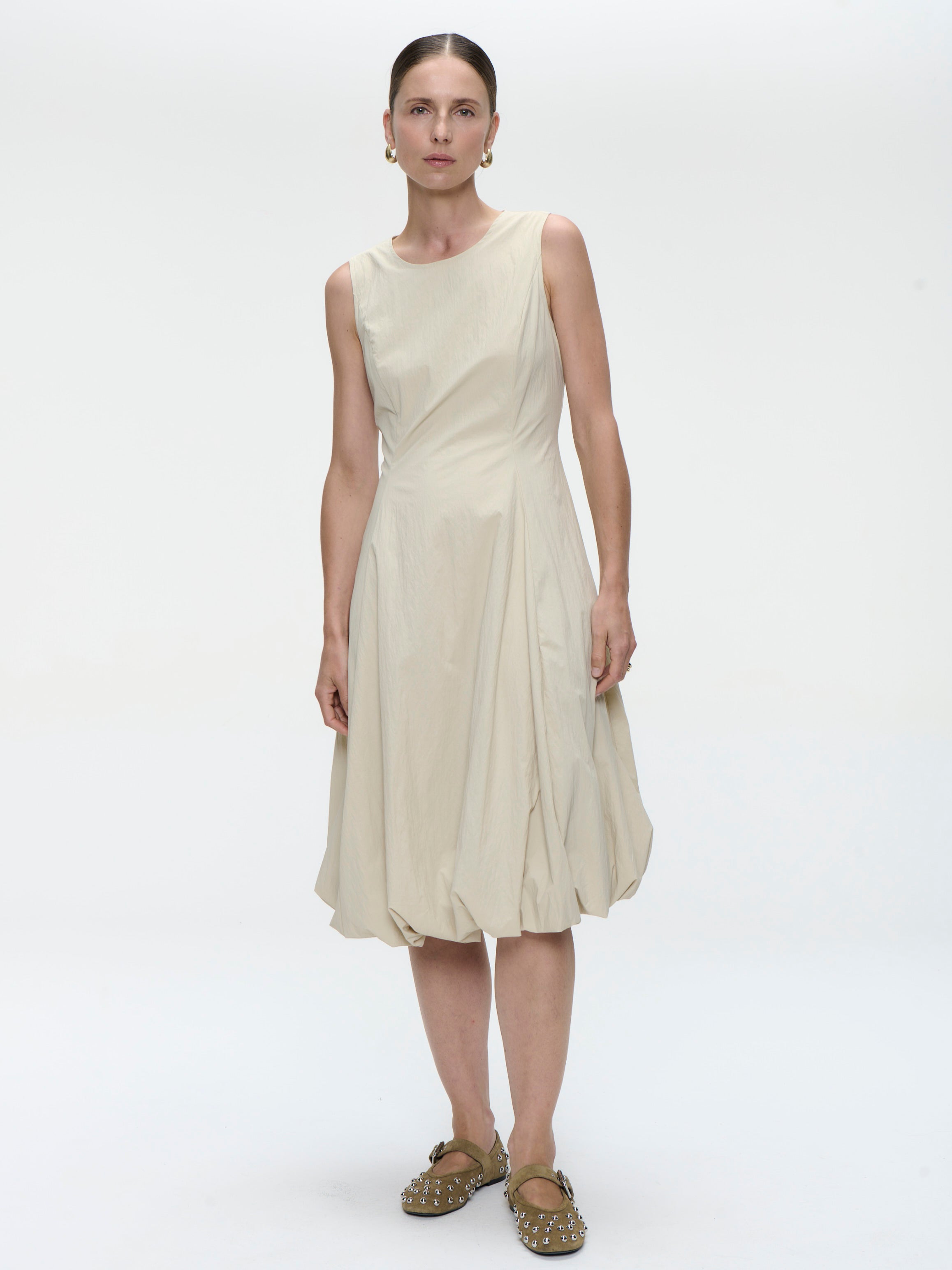 Romana Jurk: De Romana Dress, gemaakt van lichte high-tech jersey, heeft een slank gevormd silhouet met een V-hals en een mouwloos ontwerp. De jurk valt op een chique midilengte en is de perfecte mix van elegantie en comfort voor elke gelegenheid.