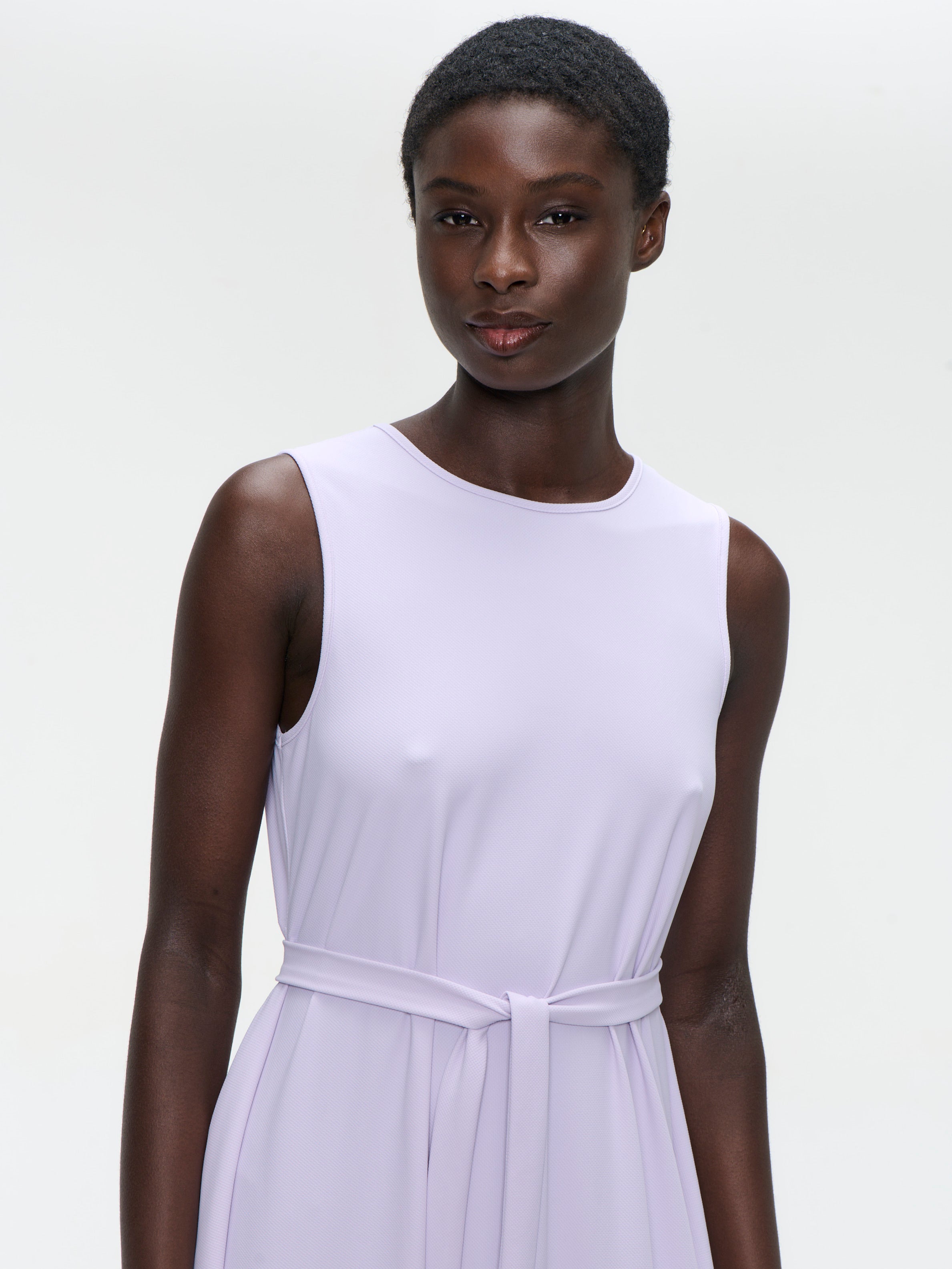 Isabel-jurk: Deze hightech lichte jurk van jersay combineert eenvoud met moderne stijl. Hij heeft een ronde hals, een mouwloos ontwerp en unieke zakken aan de buitenkant voor een chique, studio-geïnspireerde look. Perfect voor moeiteloos en eigentijds kleden.