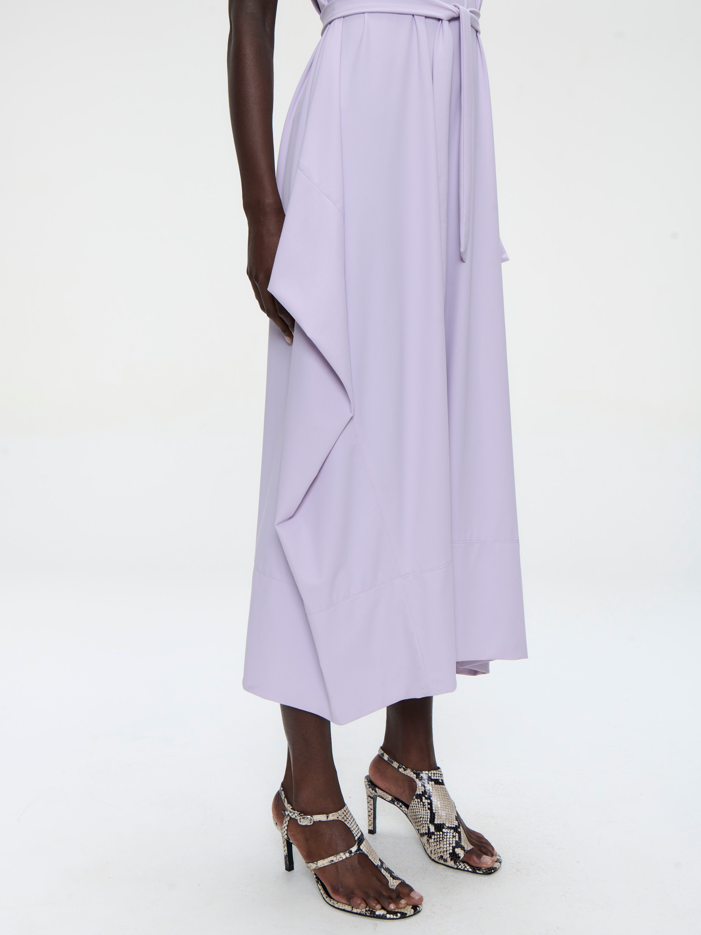• Vorm: A-lijn met asymmetrische zijdraperingen