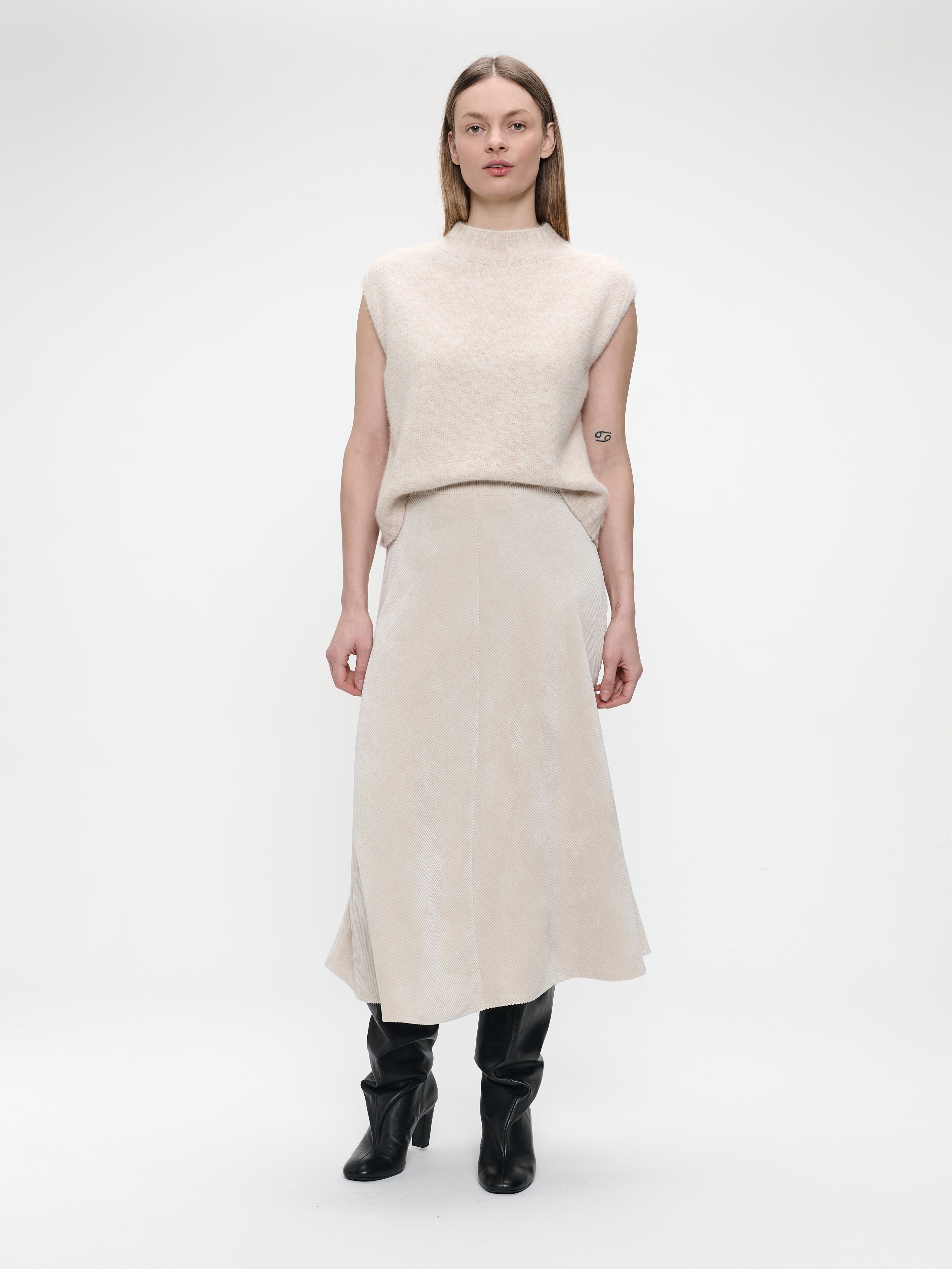 Alpaca Vest H24179 is het perfecte laagjesstuk voor overgangsweer. Gemaakt van een luxueuze alpacamix, biedt dit mouwloze breisel zowel zachtheid als structuur. De hoge halslijn en relaxte pasvorm maken het ideaal over shirts, jurken of lichtgewicht tops voor een verfijnde en comfortabele uitstraling.