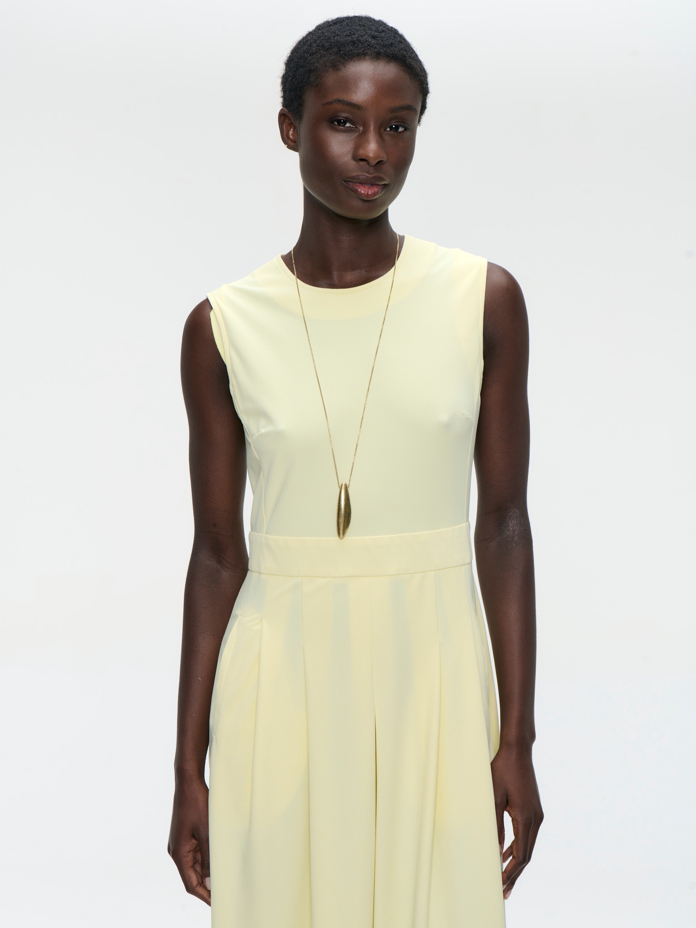 De Jackie Dress van Jane Lushka combineert minimalisme met moderne elegantie. Gemaakt in Europa van glad, rekbaar technisch jersey, heeft deze mouwloze jurk een ronde halslijn en een relaxed, zacht gedrapeerd silhouet. De subtiele plooidetail aan de voorkant en de vloeiende midi-lengte zorgen voor moeiteloze beweging, terwijl de rechte snit tijdloos en veelzijdig blijft — perfect voor zowel dagelijks gebruik als geklede combinaties.