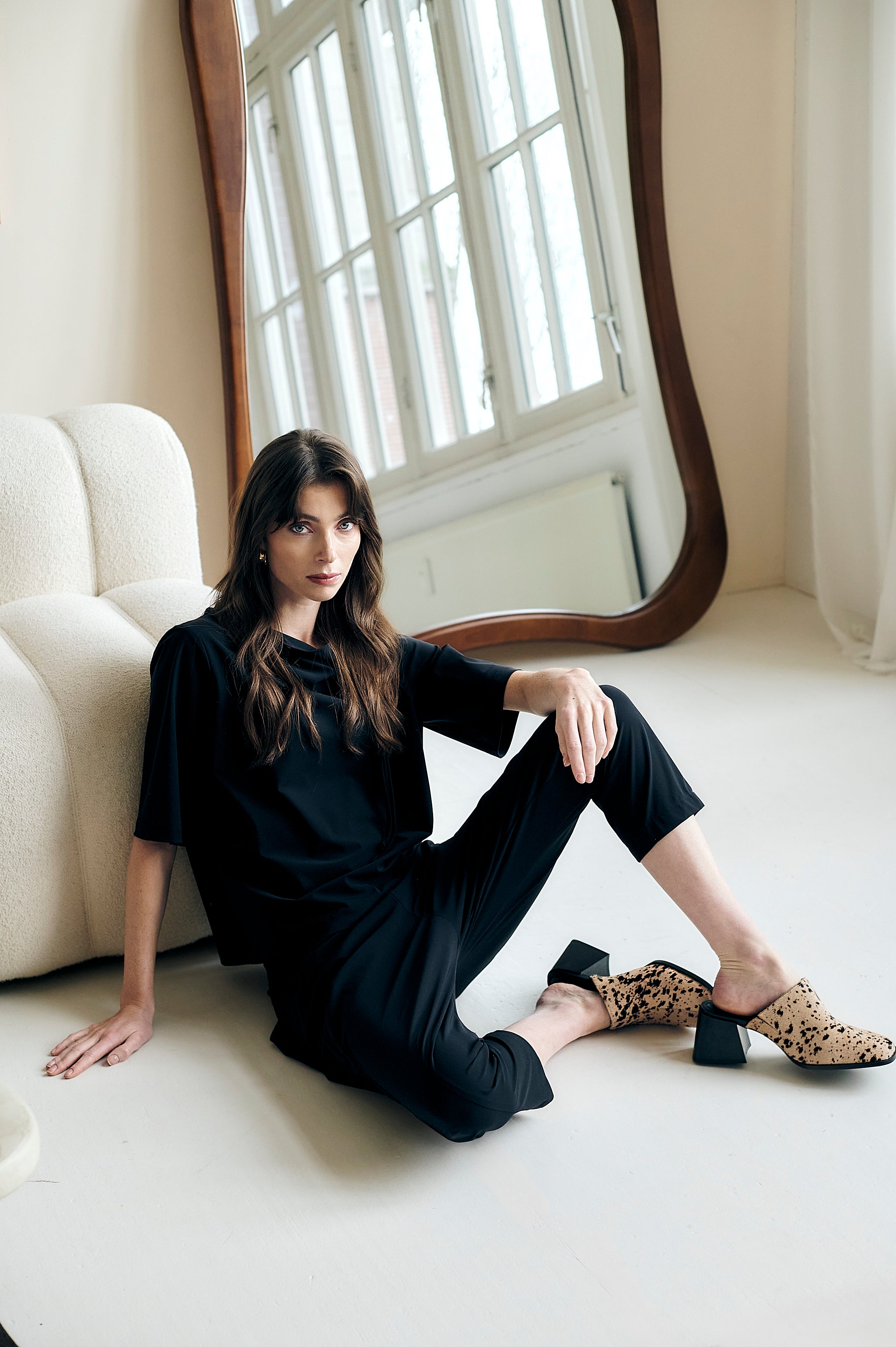 De Jamaica Top Technical Jersey van Jane Lushka is een moderne interpretatie van casual elegantie. Gemaakt in Italië van zachte technische stretchjersey, heeft deze top een losse pasvorm en een hoge hals met trekkoord, wat een sportieve maar stijlvolle uitstraling geeft. Met halflange mouwen en een minimalistisch silhouet is het een perfecte keuze voor comfortabele, chique looks.